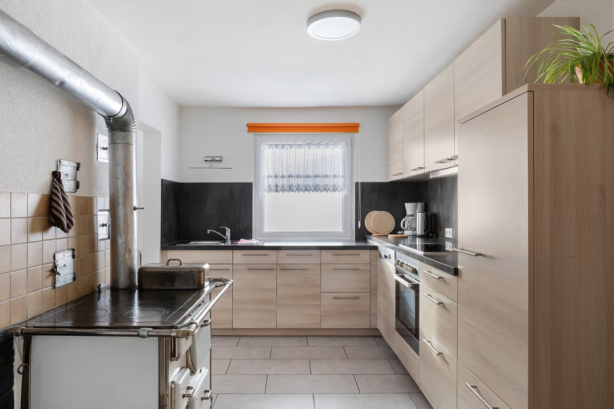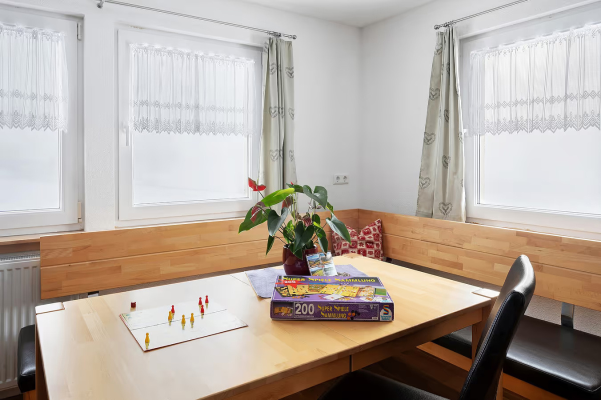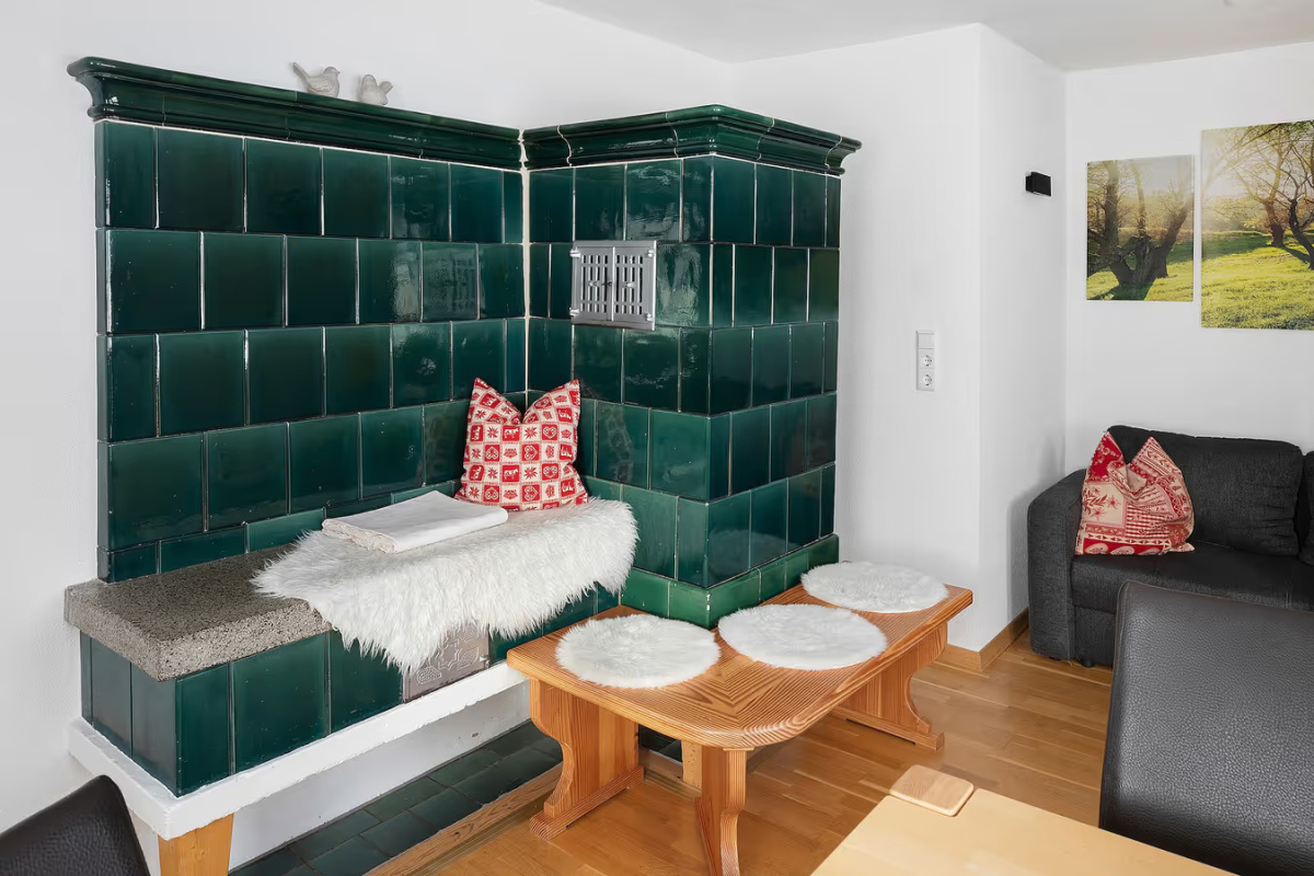 Das Schlafzimmer mit zusätzlichem Kinderbett sorgt für erholsame Nächte. Im gemütlichen Wohnbereich kann die Schlafcouch bei Bedarf als Schlafplatz für bis zu zwei Kinder genutzt werden. Für besondere Gemütlichkeit sorgt der Kachelofen, den wir gerne für Sie einheizen. Am großen Esstisch ist ausreichend Platz zum gemeinsamen Essen, Spielen und Beisammensein.